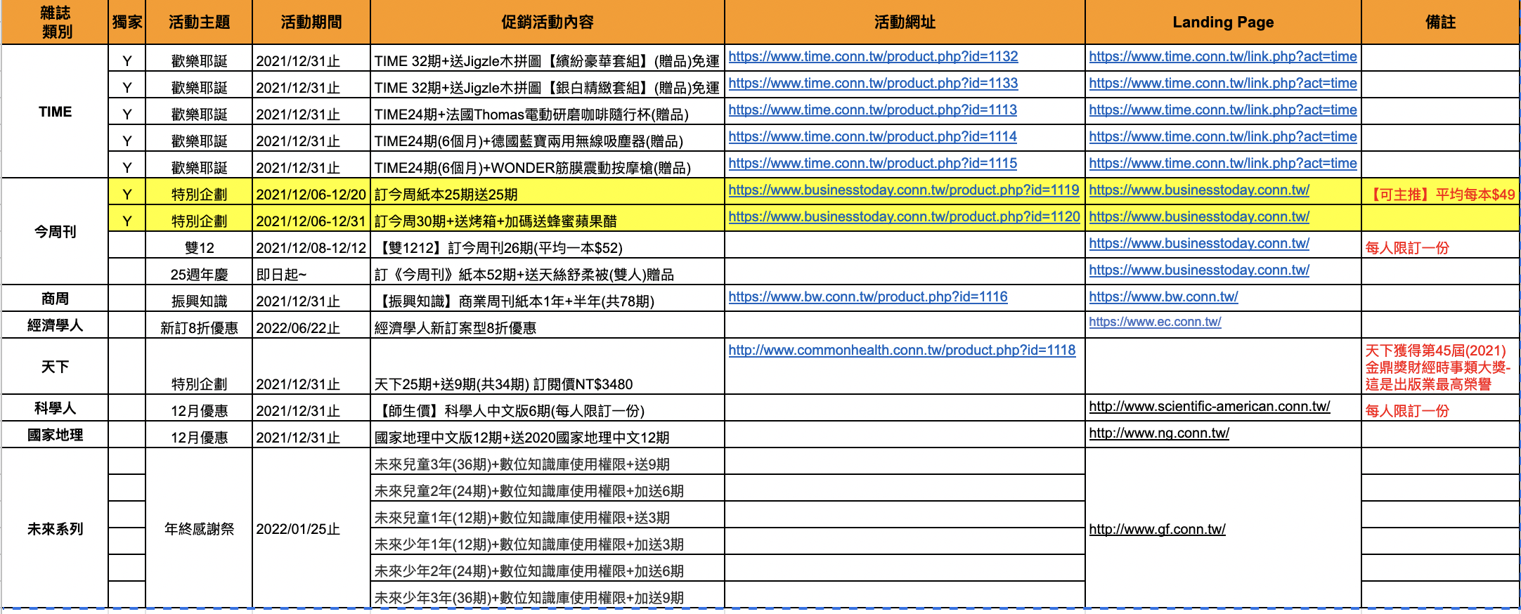 【台時亞洲】12月共8大品牌雜誌20檔活動!購買贈品超豐富!快推起來!
