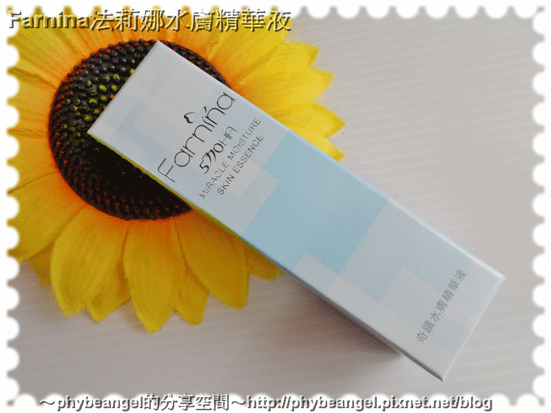 Farnina法莉娜奇蹟水膚精華液~ 水藍色層次感的外盒色彩~ 有水的感覺~跟保濕的主題很搭! 外盒的四個面大概就是這樣~