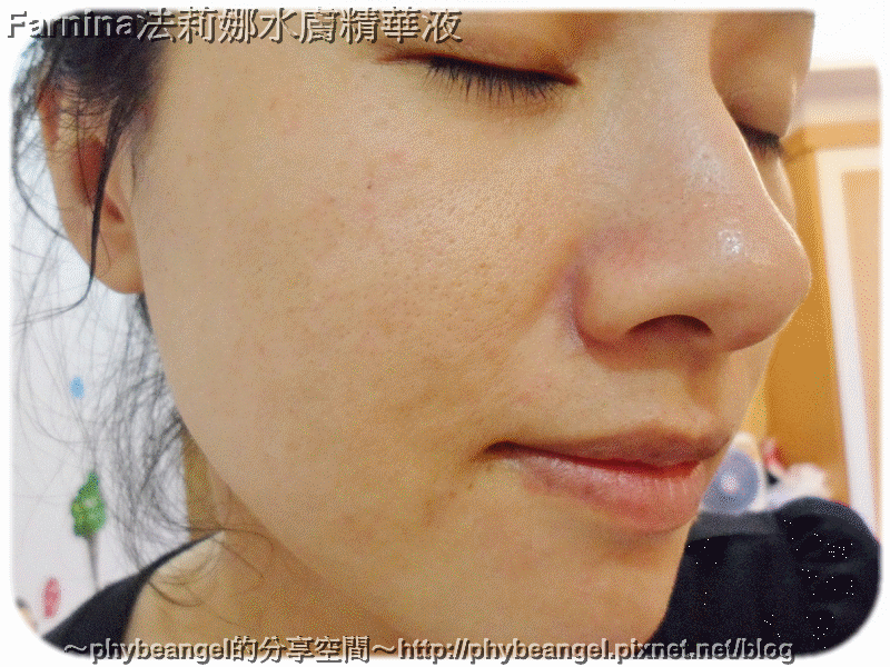 在按摩的過程中就可以感覺到Farnina法莉娜奇蹟水膚精華液已經漸漸的滲透到肌膚底層, 因為通常像這種比較濃潤一點的精華液滲透速度都會比較慢, 但是Farnina法莉娜奇蹟水膚精華液感覺上比其他同級的滲透速度快點, 這就是歸功於它5770HA專利超微米玻尿酸的功勞了, 微小分子的玻尿酸也更能滲入深層肌膚底層, 另外值得一提的是~待它吸收後除了保濕感依舊外, 還有一點就是會覺得肌膚開始緊緻了起來, 好像都被網住了, 想不到除了保濕外還感覺得到緊緻的感覺唷! 每天早晚連續使用會有更明顯的感覺的! 肌膚變得好水好嫩好光亮囉~真的很開心耶! 小細紋跟毛孔粗大的狀況也都可以因為用了Farnina法莉娜奇蹟水膚精華液後, 讓我漸漸看到轉變~ 真的肌膚保濕了~一些肌膚的狀況都迎刃而解了! 另外這陣子我還會拿來加在粉底液裡使用,