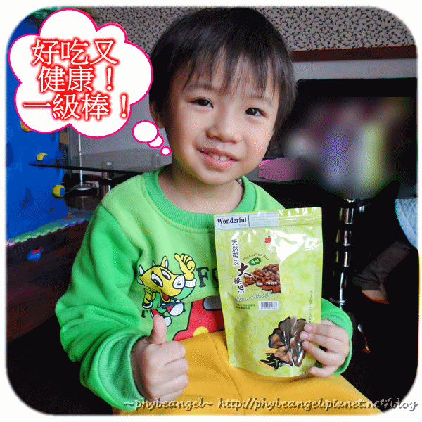 我家寶貝超愛吃的~一直捨不得放下~ 可以說是到了愛不釋手的地步! 一點都不知道他嘴角的腰果殘渣已經入鏡~ 趕快幫他擦去,他還以為我要搶他的腰果哩~