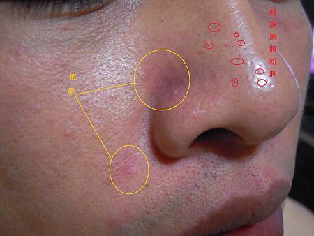 鼻頭的粉刺氾濫外加二顆痘痘,整個鼻子就像顆草莓