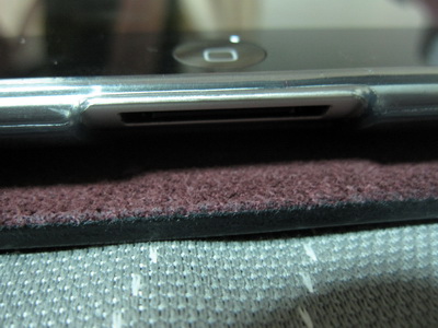 充電傳輸孔/電源孔,這個不是用挖空的方式,而是直接包覆在保護套裡面。 只有留聲音/轉向開關的孔而已。
