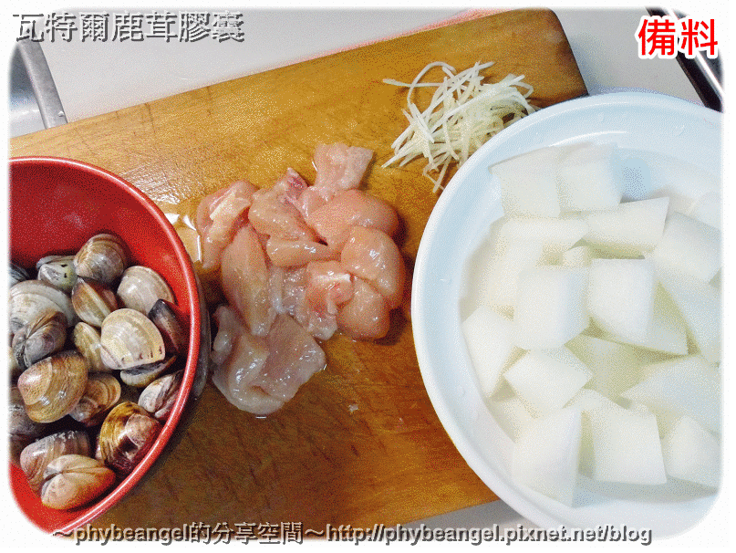 做 法: 1.準備雞肉塊、蛤蜊、冬瓜去皮切塊、薑絲。 2.將所有材料與米酒放入電鍋中,再加入瓦特爾鹿茸粉約半顆, 外鍋加一杯水,蓋上鍋蓋,按下開關, 待開關跳起,加入鹽調味即可。
