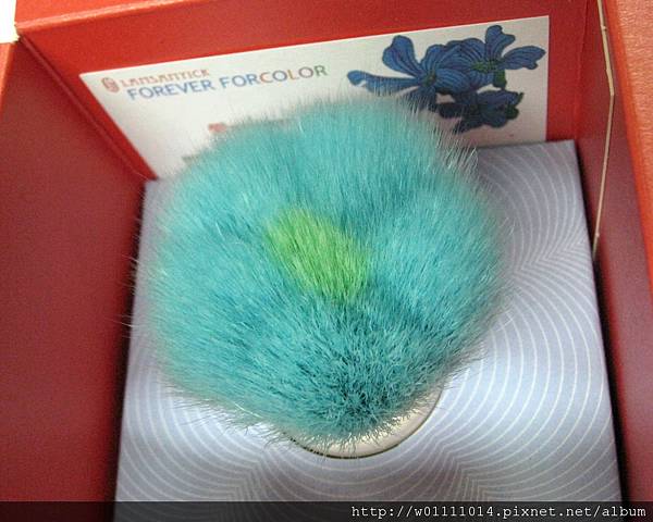裡面有美麗的藍色小花蜜粉刷,以及一張卡片介紹說明。