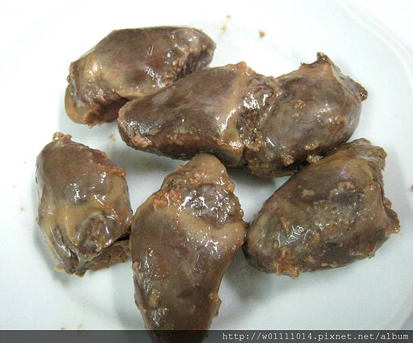 還沒開封就可以看到好大一顆的鴨心唷,一般都是吃雞心比較多,沒想到鴨心這麼大!