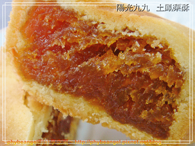 還沒咬的時候就已經香氣十足~ 咬下去的同時餅皮的奶香以及土鳳梨的果香一起在嘴裡散發並融合~ 還咬得到鳳梨果粒纖維,酸酸甜甜的滋味,而且完全不咬舌! 真的讓人想起了初戀的感覺, 酥脆的餅皮加上紮實鳳梨內餡簡直就是完美組合! 還有內餡的那種酸跟那種甜就是鳳梨純天然的味道, 我想我又戀愛了~愛上了陽光九九土鳳梨酥~